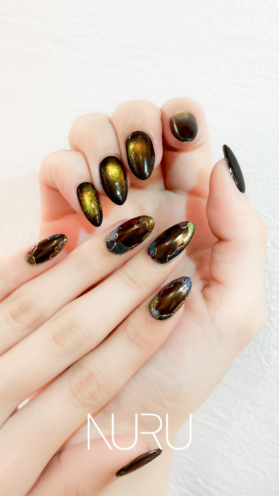 NURU HORIEでは、韓国や欧米の最新トレンドを常にチェックし、高品質なマグネットジェルやパウダーを積極的に導入しています。「他のサロンとは輝きが全然違う」と驚かれることも多いです。