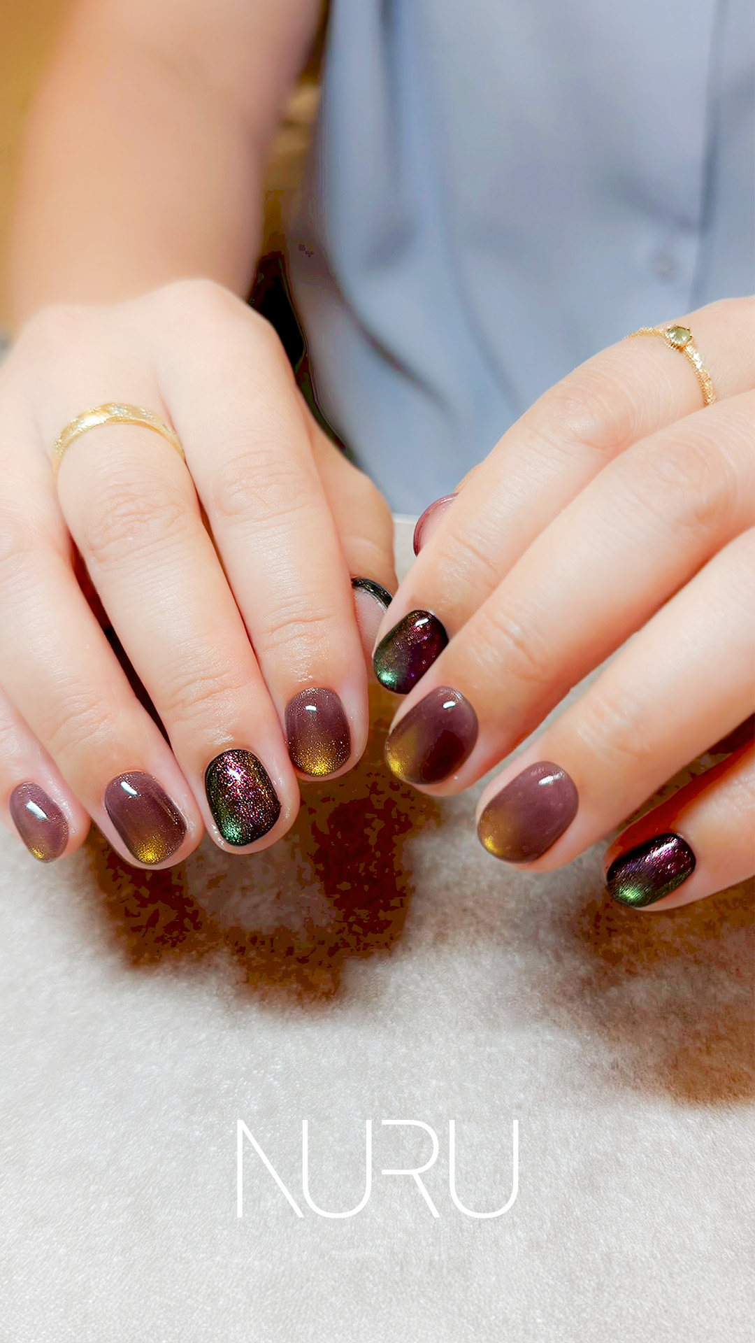 角度によって輝きが変わるマグネットネイルやミラーネイル。動画なら、その変化をしっかり確認できます。